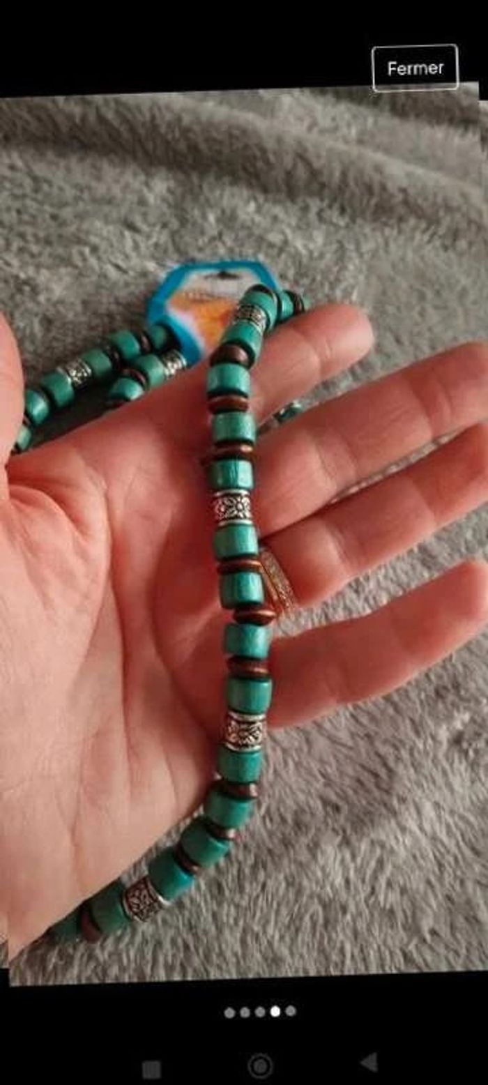 Ensemble  collier et  bracelet élastique bleu fantaisie femme - photo numéro 4