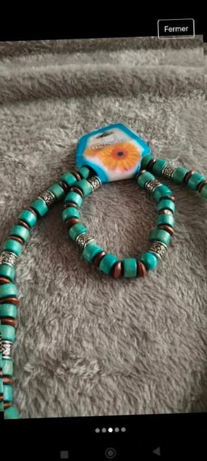 Ensemble  collier et  bracelet élastique bleu fantaisie femme - photo numéro 2