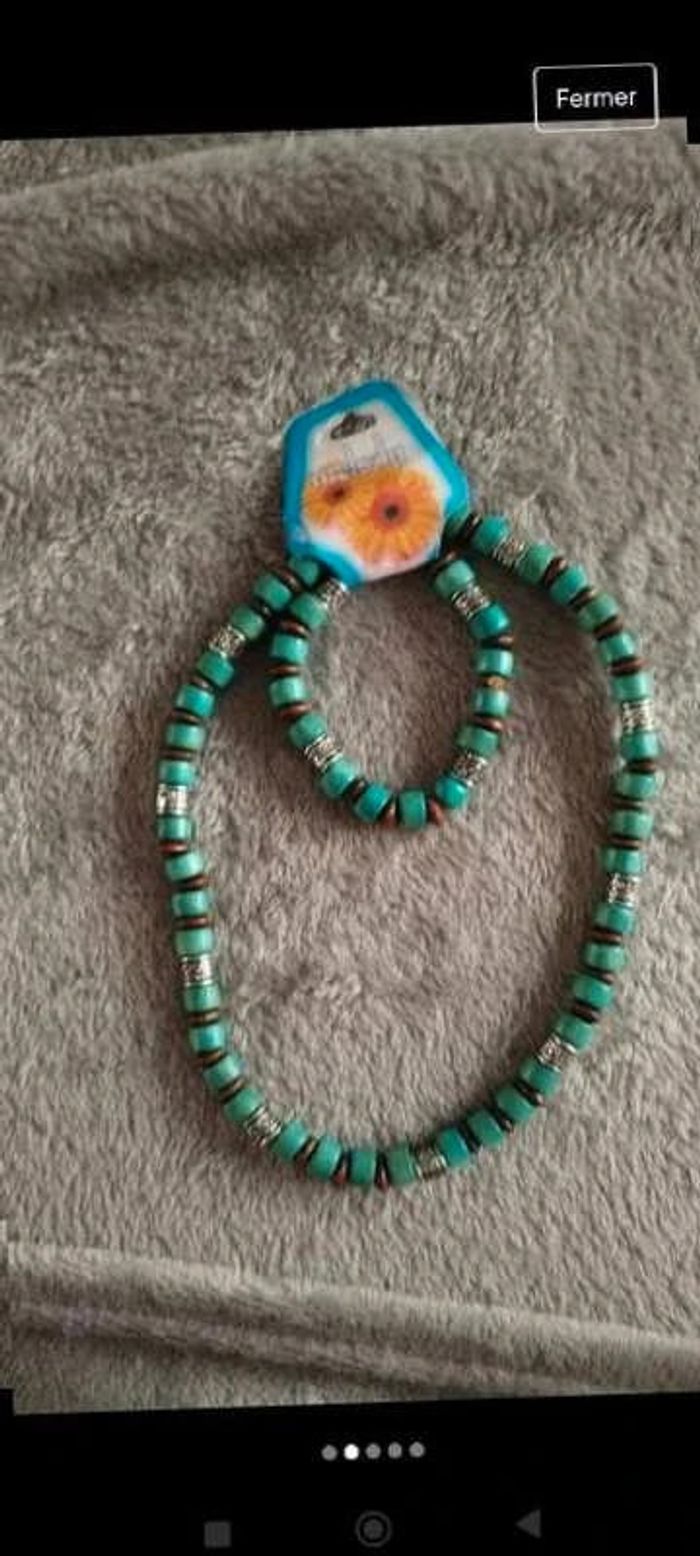 Ensemble  collier et  bracelet élastique bleu fantaisie femme - photo numéro 1