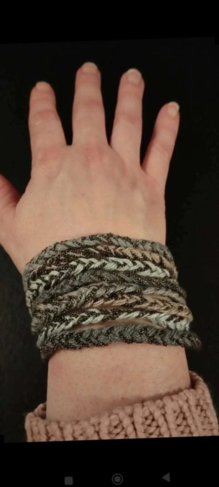 Bracelet  tressé  vert taupe  gris - photo numéro 2