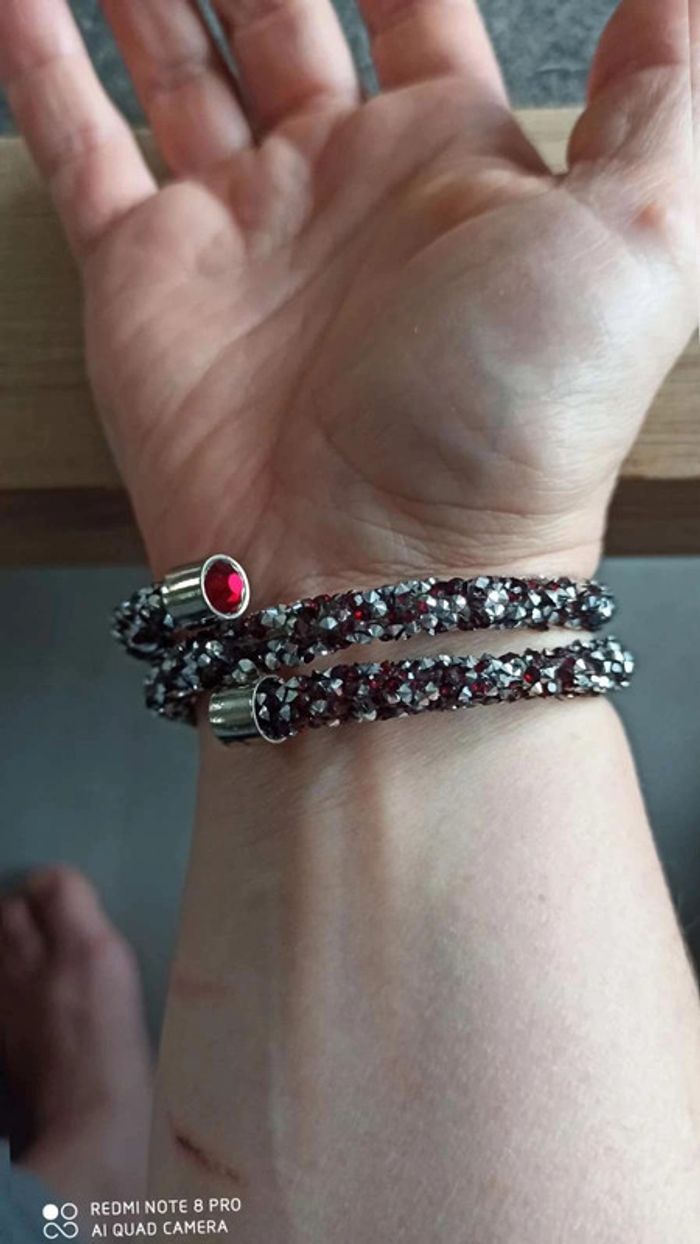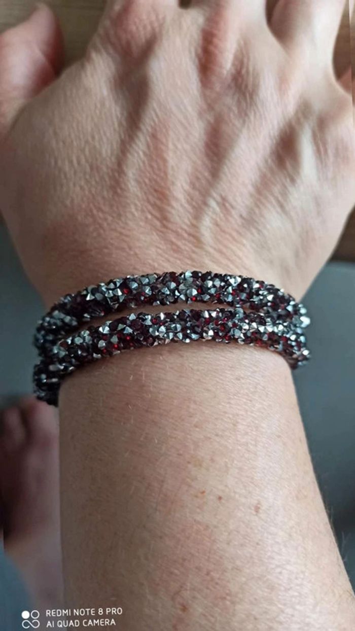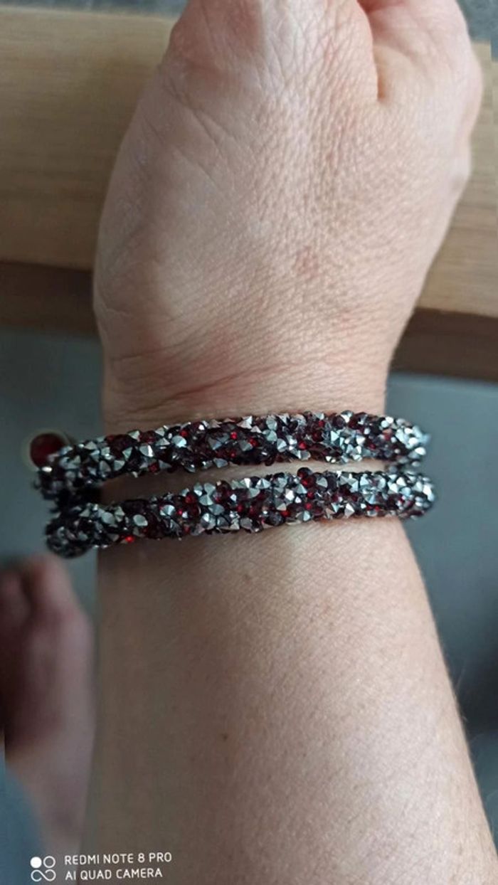 Bracelet  argenté  rouge  noir - photo numéro 2