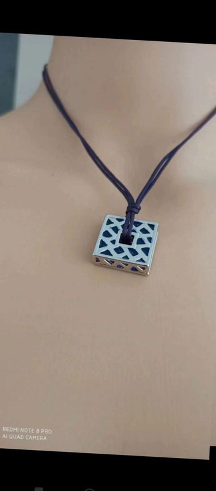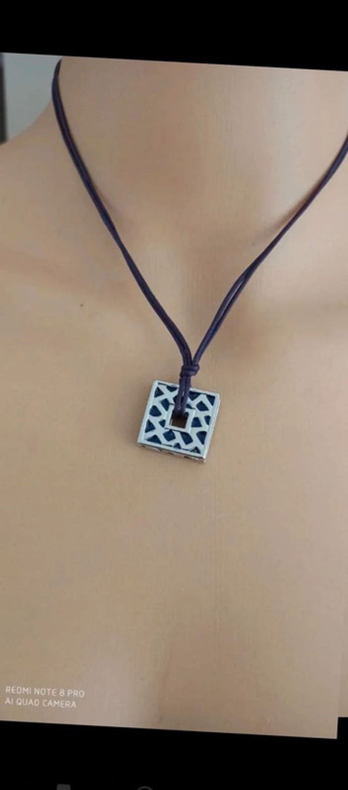 Collier pendentif  cube aubergine  argenté - photo numéro 4