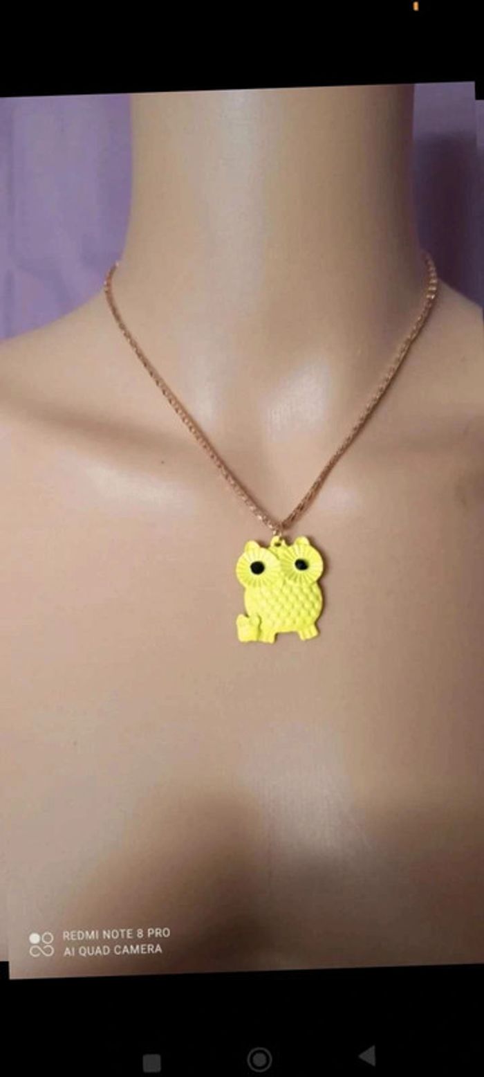 Collier  doré  pendentif hibou jaune - photo numéro 3