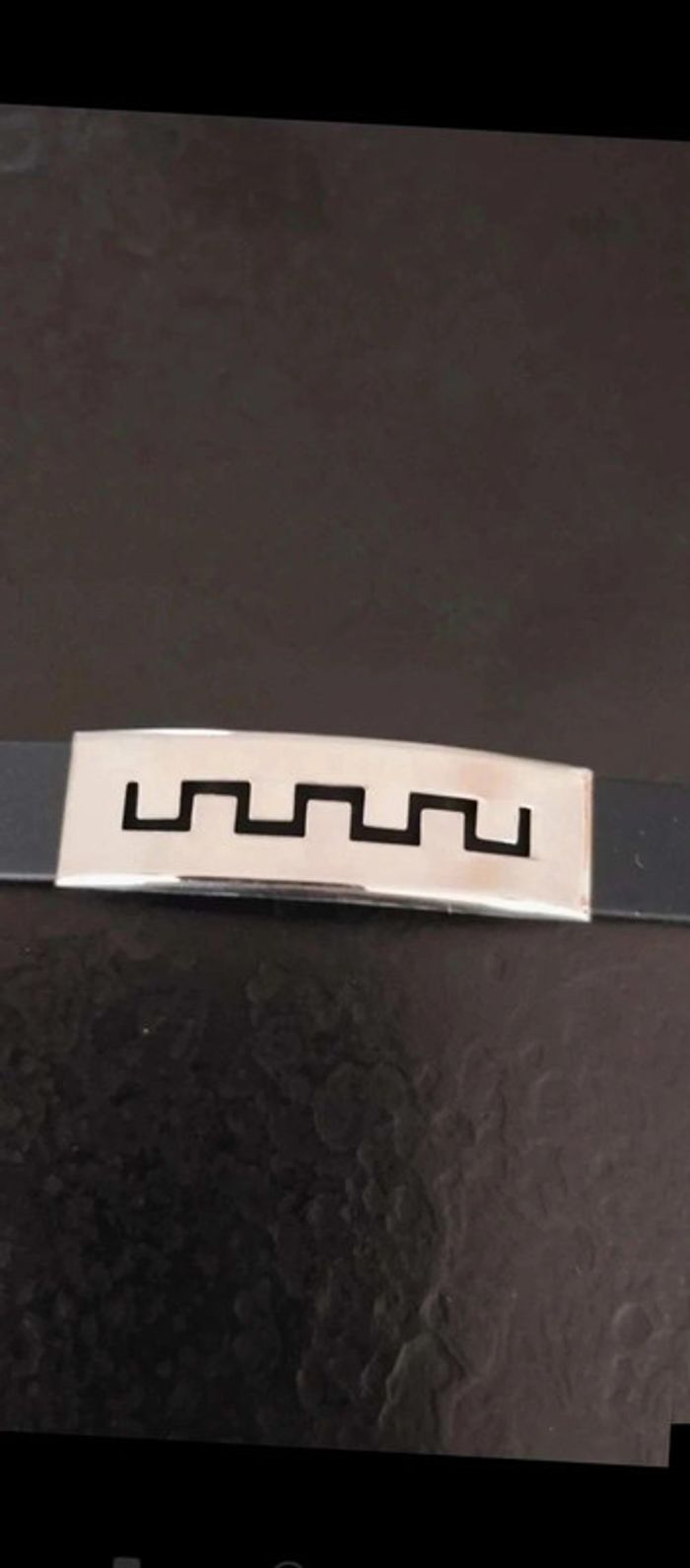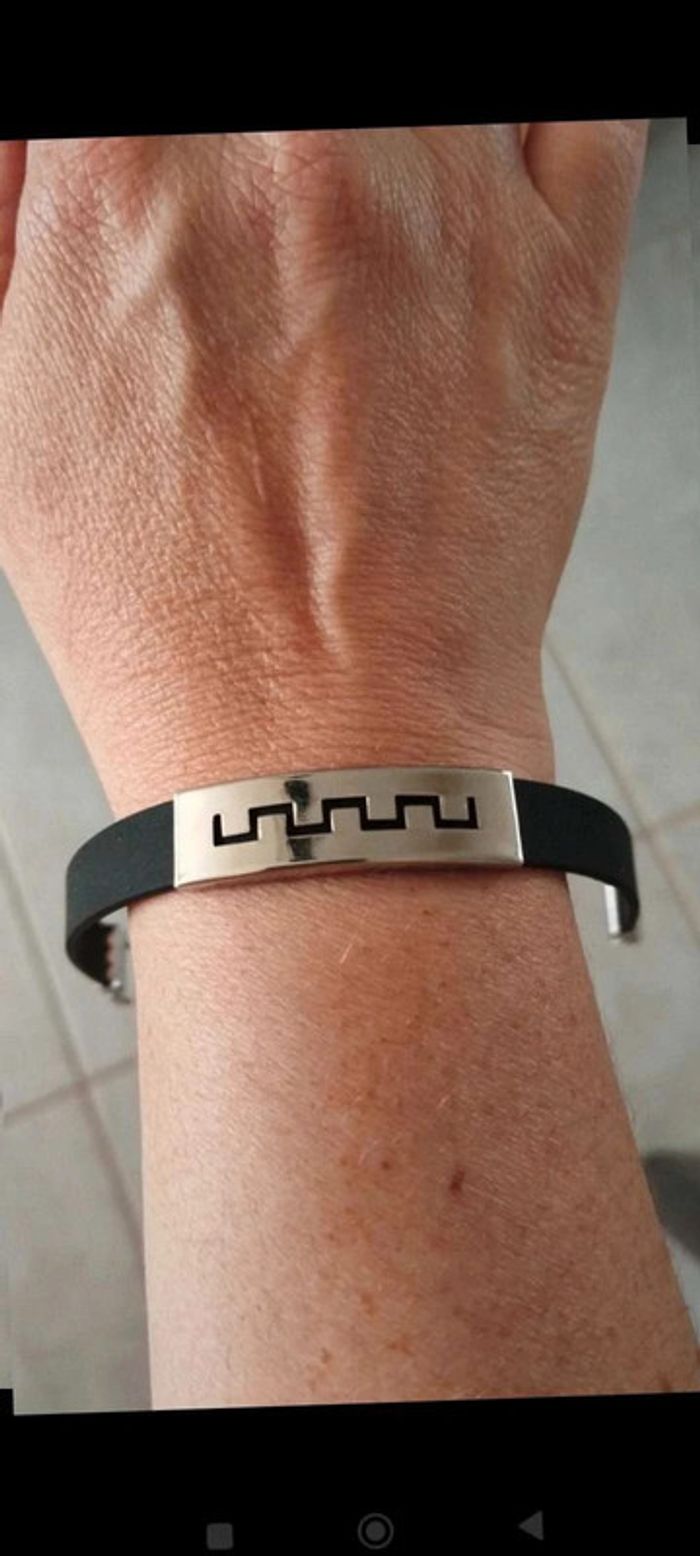 Bracelet  noir silicone  plaque argenté  acier  fantaisie - photo numéro 6