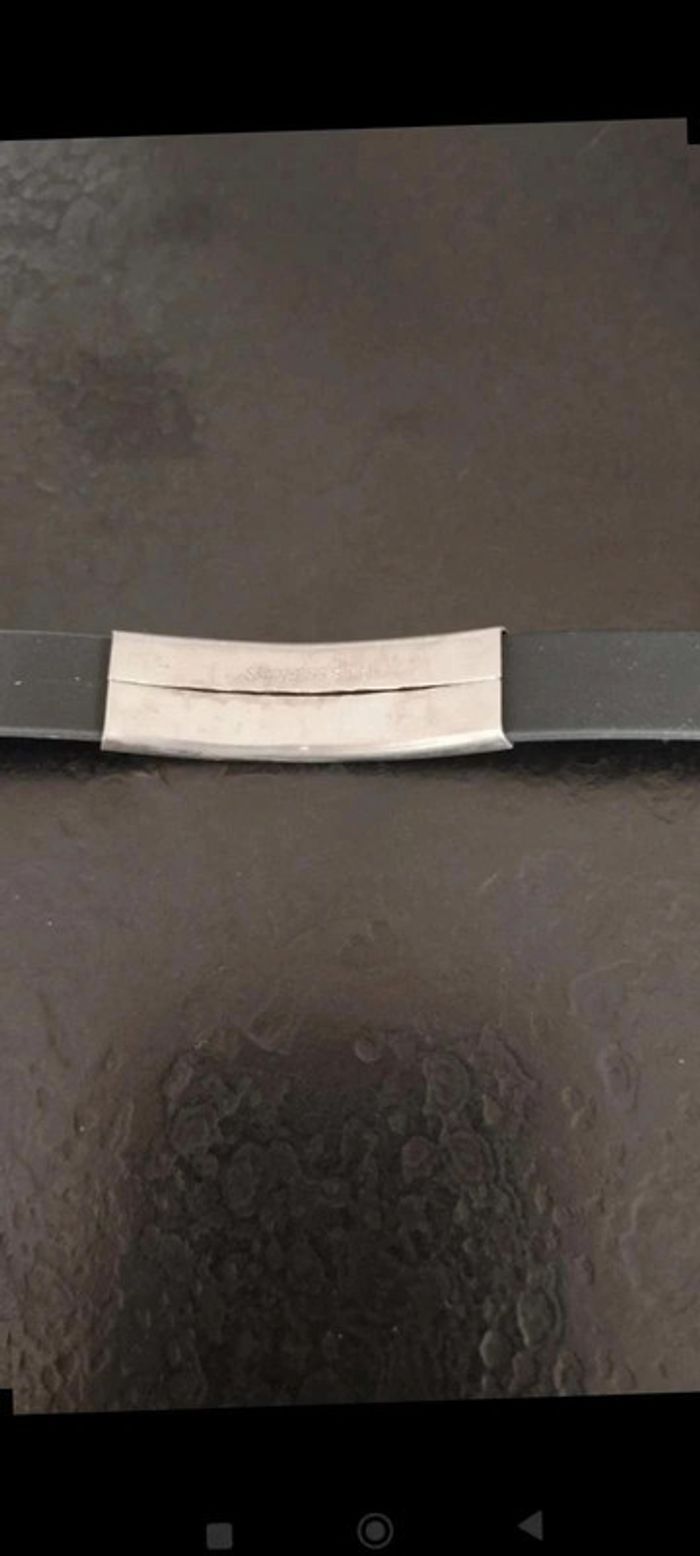 Bracelet  noir silicone  plaque argenté  acier  fantaisie - photo numéro 7