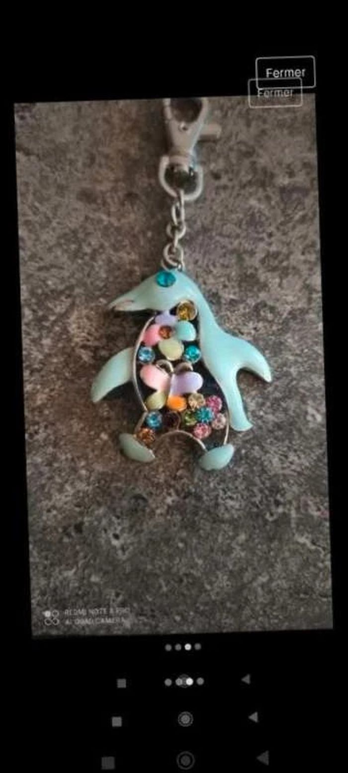 Original porte-clés  pingouin  vert  avec fleurs  colorées - pour  femme  ou  fille - photo numéro 4