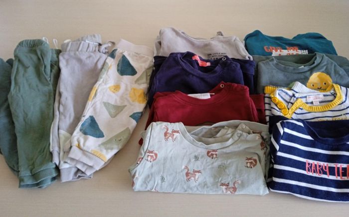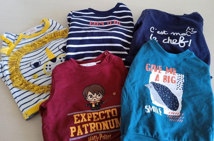 Lot bébé 12 mois comprenant : - 3 ensembles pulls & pantalons - 5 pulls - 1 pantalon Différentes marques, très bon état rien à signaler