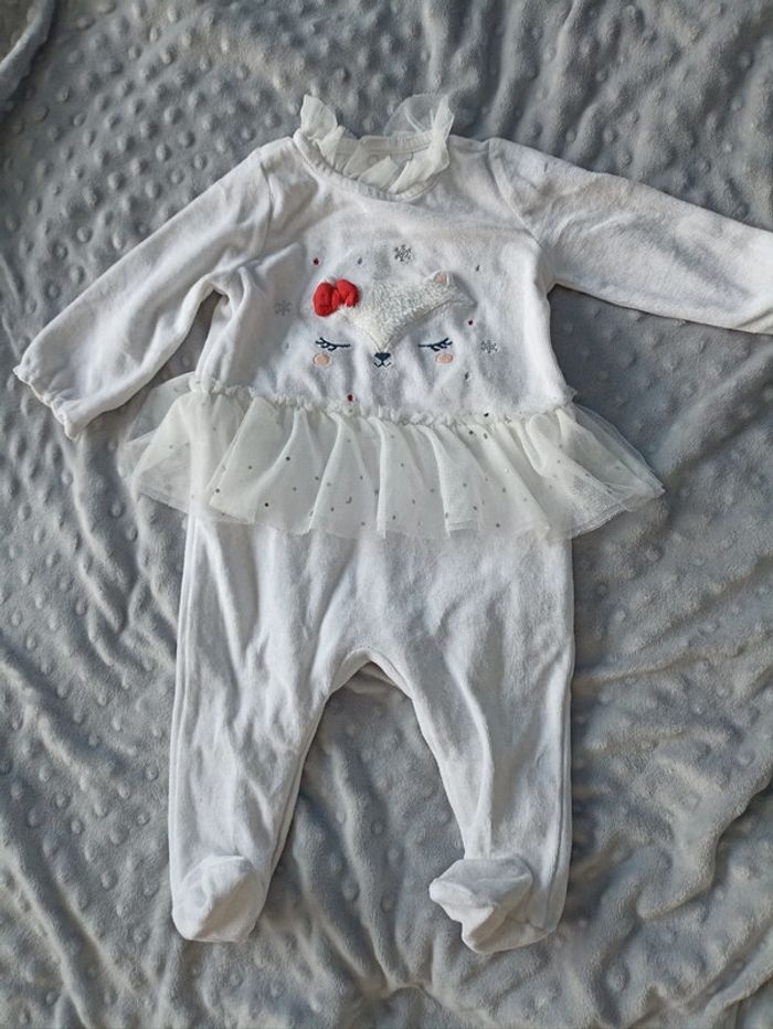Pyjama en velours avec col et volant en tulle - photo numéro 1