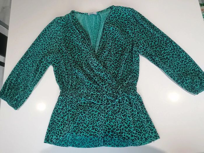 Haut plissé léopard vert noir Taille M 👕 - photo numéro 1