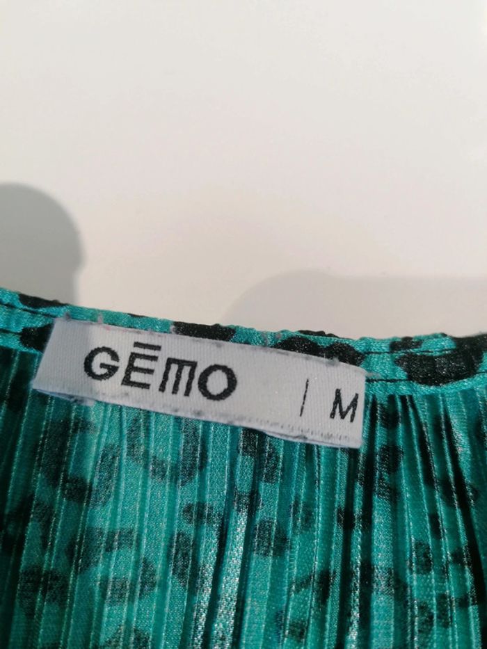 Jolie haut effet plissé gaufré Vert lagon tacheté noir genre leopard Neuf! Gémo Taille M Doux Légèrement cintré élastique à la taille Chic, élégant Uniquement mondial relay 📦⚠️