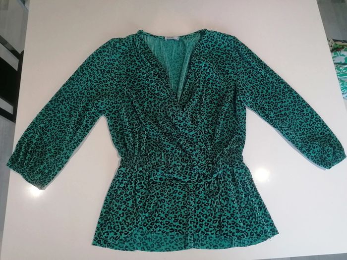 Haut plissé léopard vert noir Taille M 👕 - photo numéro 3