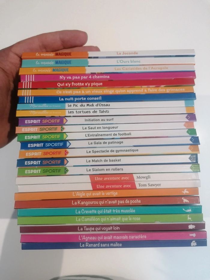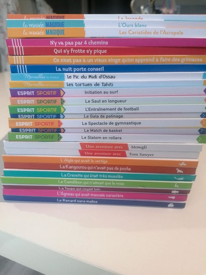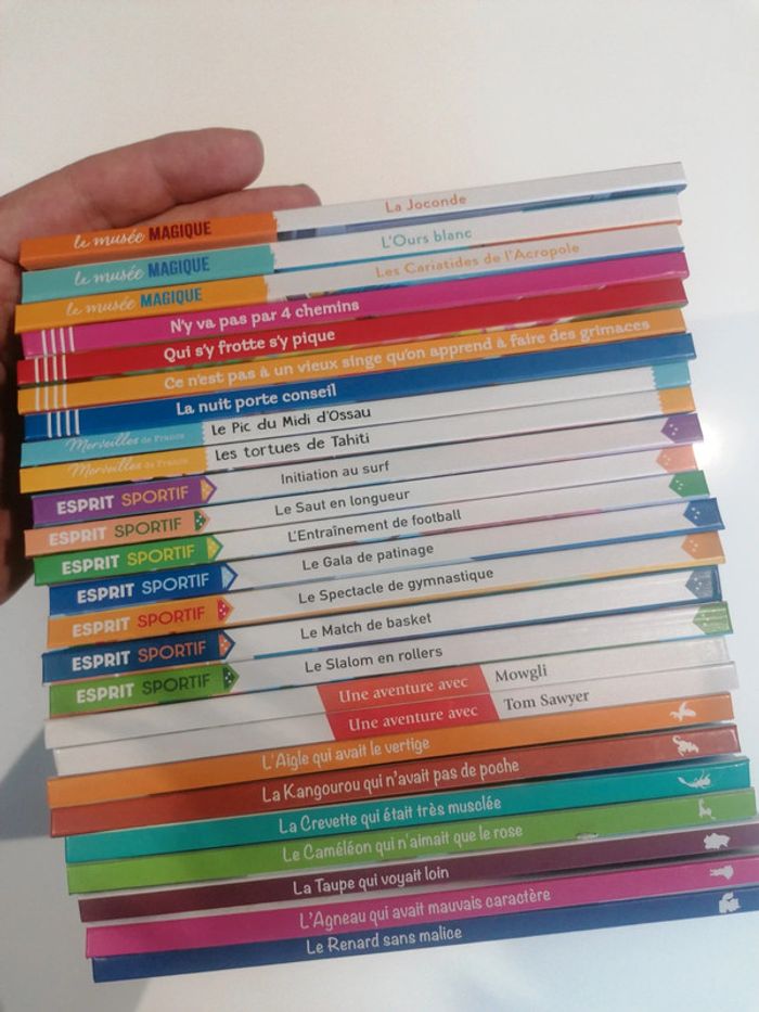 Gros lot de livres 📕📘📗 Macdonald Neuf!!! Idée cadeau pour un /une petite lectrice 👧🏻 Titres : - La Joconde - L'ours blanc - Les Cariatides de I Acropole - N' y va pas par 4 chemins - Qui si frotte si pique - Ce n'est pas à un vieux singe qu'on apprend à faire des grimaces - La nuit porte conseil - Le Pic du Midi d'Ossau - Les tortues de Tahiti - Initiation Au surf - Le saut en longueur - L entraînement de football - Le Gala de patinage - Le spectacle de gymnastique - Le Match de basket - Le Slalom en rollers - Une aventure avec Mowgli - Une aventure avec Tom Sawyer - L Aigle qui avait le vertige - La Kangourou qui n avait pas de poche - La Crevette qui était très musclée - Le Caméléon qui n'aimait que le rose - La Taupe qui voyait loin - L Agneau qui avait mauvais caractère - Le Renard sans malice Uniquement mondial relay 📦⚠️