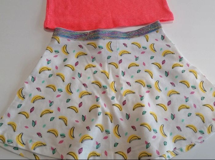 Ensemble fille été 🌞👧🏻 Taille 3 ans Kiabi Haut orange flashy Jupe motif bananes, taille élastique et liseret argenté multicolore Idée cadeau 🎁 Uniquement mondial relay ⚠️📦
