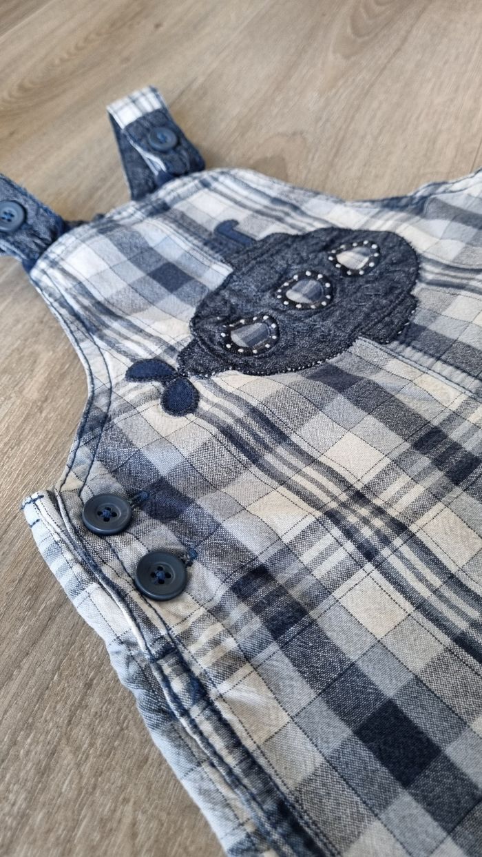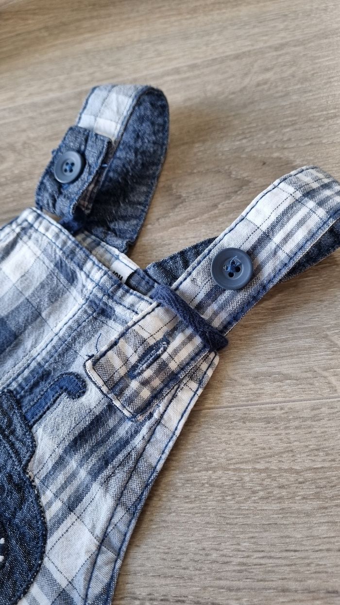 Salopette 100% coton. Ouverture à l'entrejambe par boutons pressions + ouvertures latérales. Seul bémols: un petit fil de tiré (voir photo n°7) Me semble plus bleu marine en réel que sur les photos.