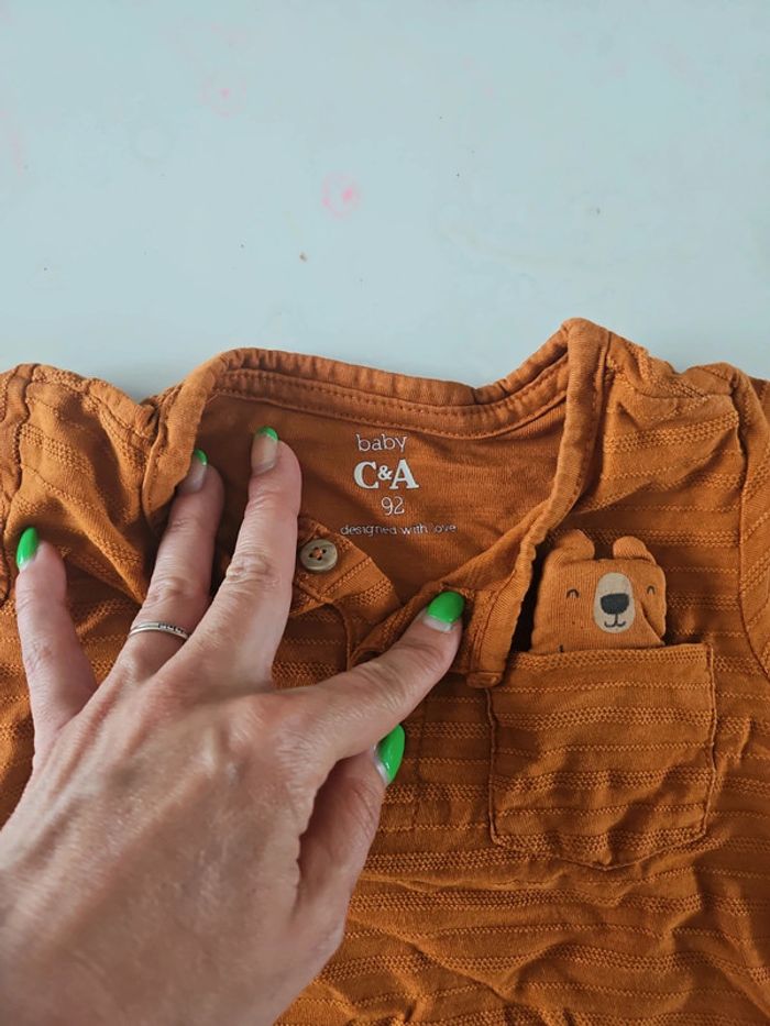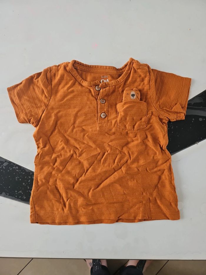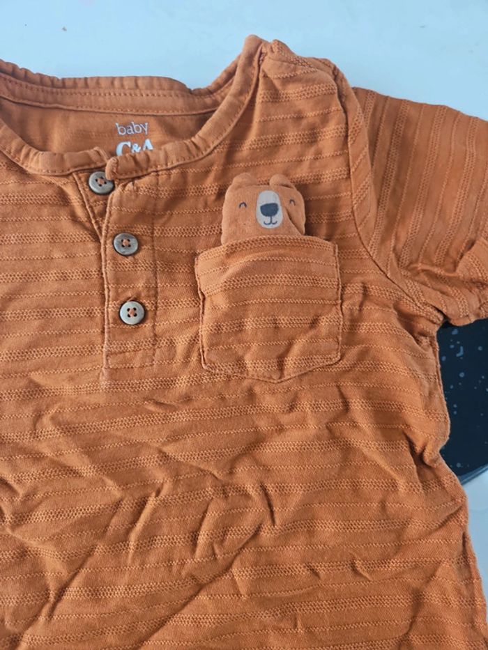 Vends tee-shirt garçon Couleur marron, petit ourson accroché dans la poche Marque C&A, taille 92 cm #titiagarcon24mois