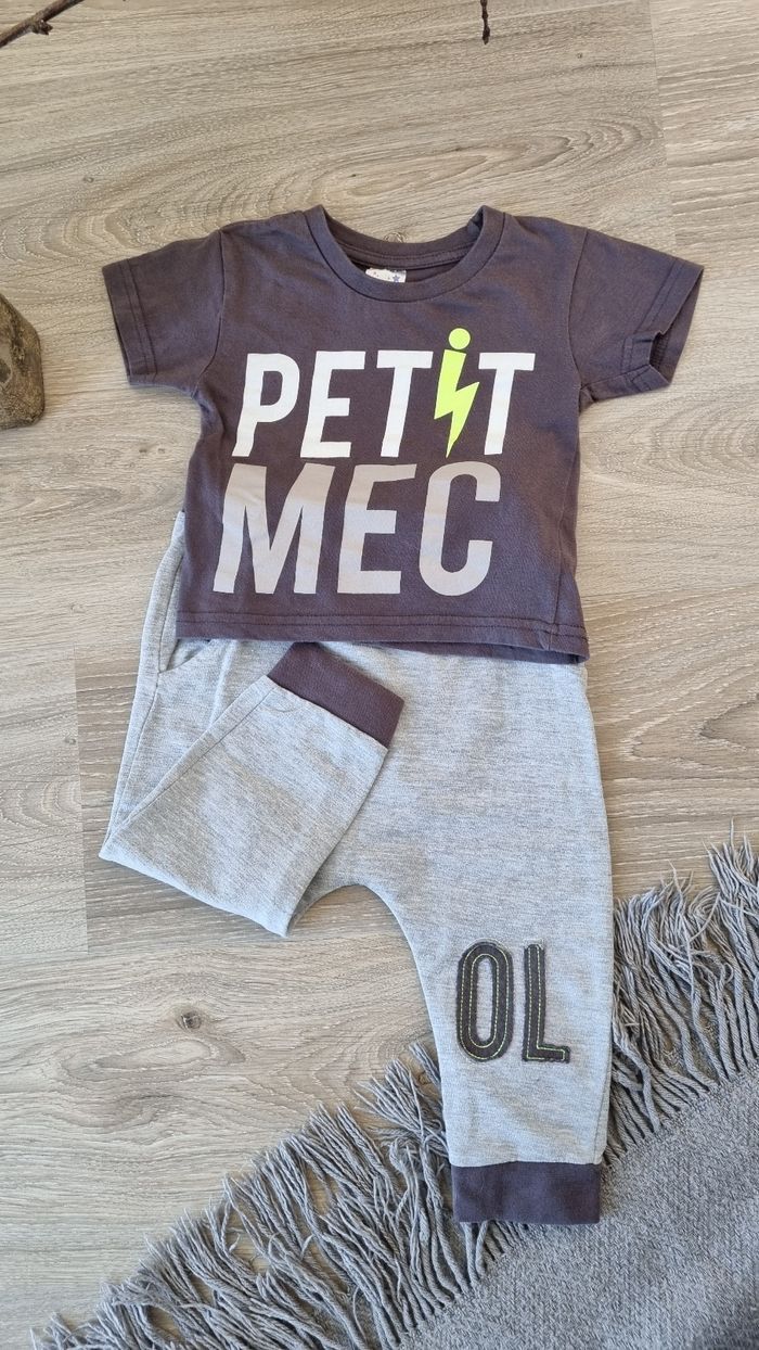 Très peu porté. Jogging assez fin. Les poches de celui sont des fausses. Le logo du Tee-shirt est intacte. Pas de défauts particuliers à signaler.