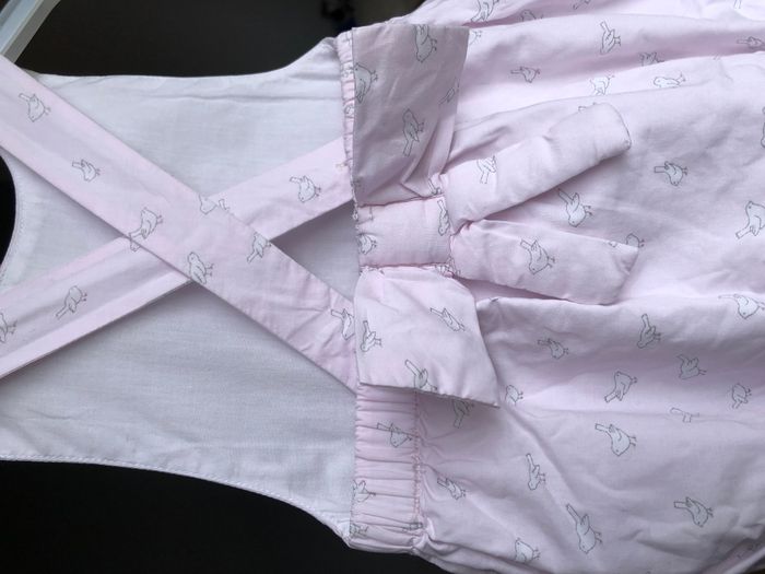 Combinaison short/ combinaison courte /salopette /barboteuse été Jacadi, Taille 3 mois/ 60 cm, Bretelles croisées dans le dos, Doublée. De couleur rose très pâle, motifs petits oiseaux blancs, Nœud matelassé dans le dos. Magnifique portée avec un body à col. Ouverture par pressions entre les jambes, les bretelles s’attachent avec des boutons en nacre. Comme neuve, pas de signe d’utilisation. 🌸 Vous aimez cet article? Retrouvez tout mon 3 mois par ici: #3mois_krookette10 N’oubliez pas d’effacer vos filtres 😊 #trois_3mois_krookette10 🌸 Vous aimez cet article ? N’oubliez pas de visiter le reste de mon dressing en filtrant les tailles.