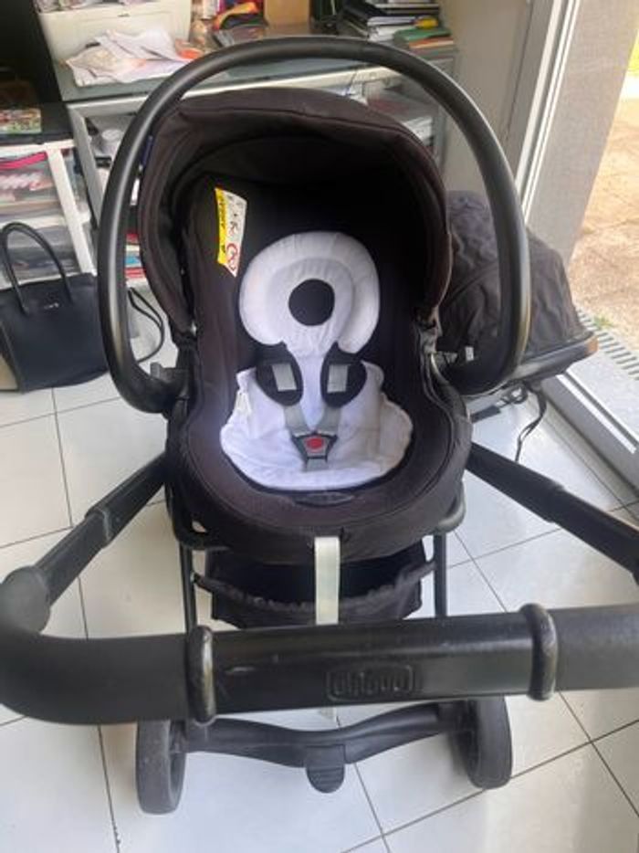 Je vends ma poussette car plus l’utilité de tout, à été utilisé par 3 enfants, tout terrain, l’assise et la poignet ont quelque accros. L’assise se met face et dos à la route et en position nacelle avec tout les accessoires, le cosy se met sur la poussette avec l’adaptateur et se met sur la base non isofix dans la voiture. A récupérer en main propre
