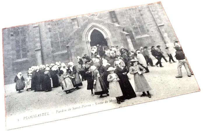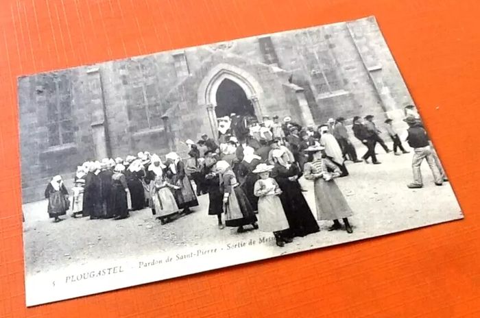 Carte postale ancienne  Plougastel (Finistère)  Pardon de Saint-Pierre  Sortie de Messe - photo numéro 1