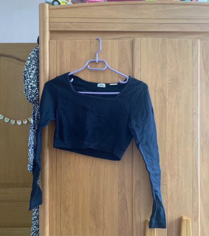 Top court à manches longues noire