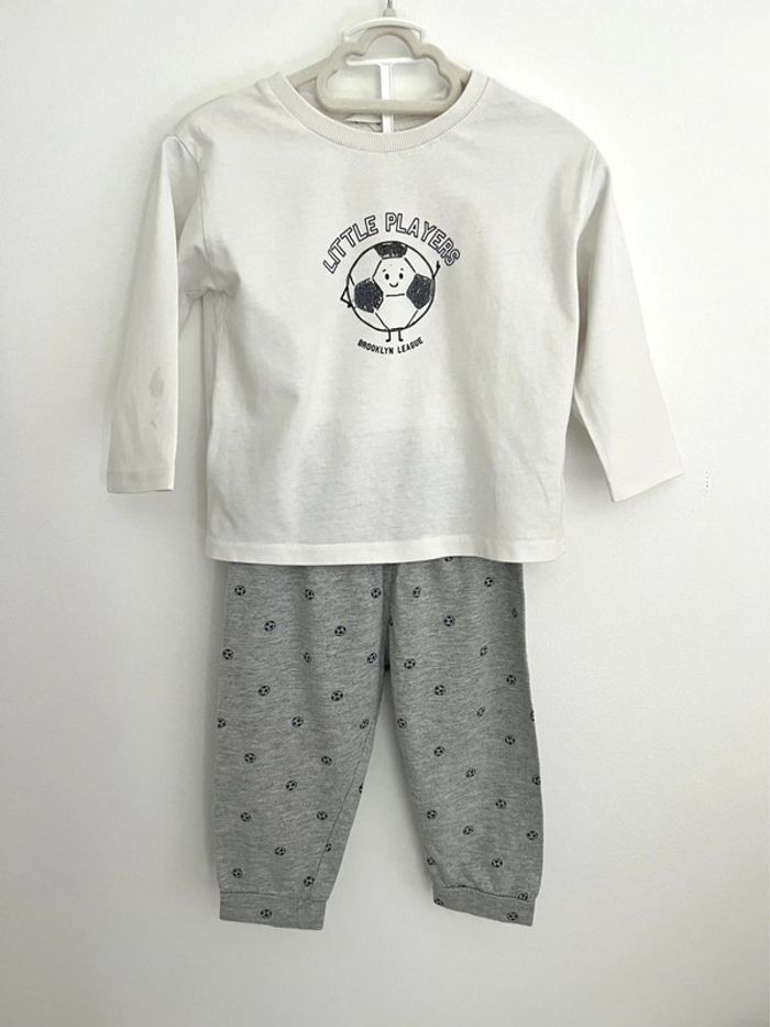 Pyjama deux pièces ballon de football Mango 12-18 mois 86cm Légère tache sur la manche gauche voir photo