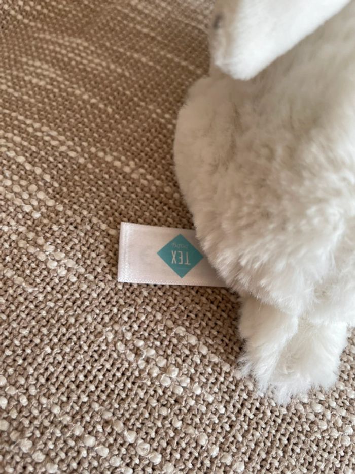 Peluche doudou 18cm tex lapin assis blanc crème très bon état - photo numéro 4