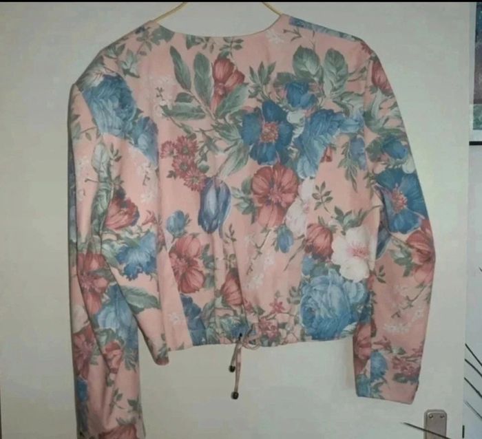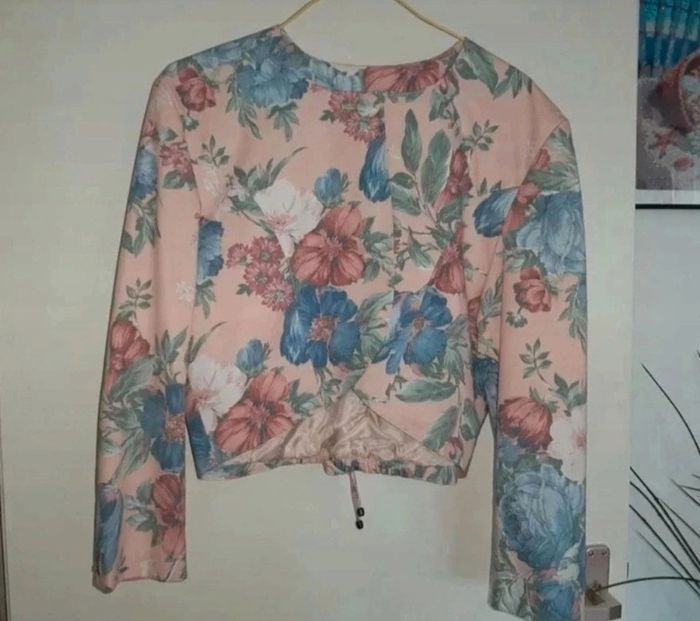 Belle petite veste courte fleurie vintage taille 40. Se ferme par un bouton. Resserrable à l'arrière. Canon ! Je la vends au prix de 20 euros. #TailleL40marine