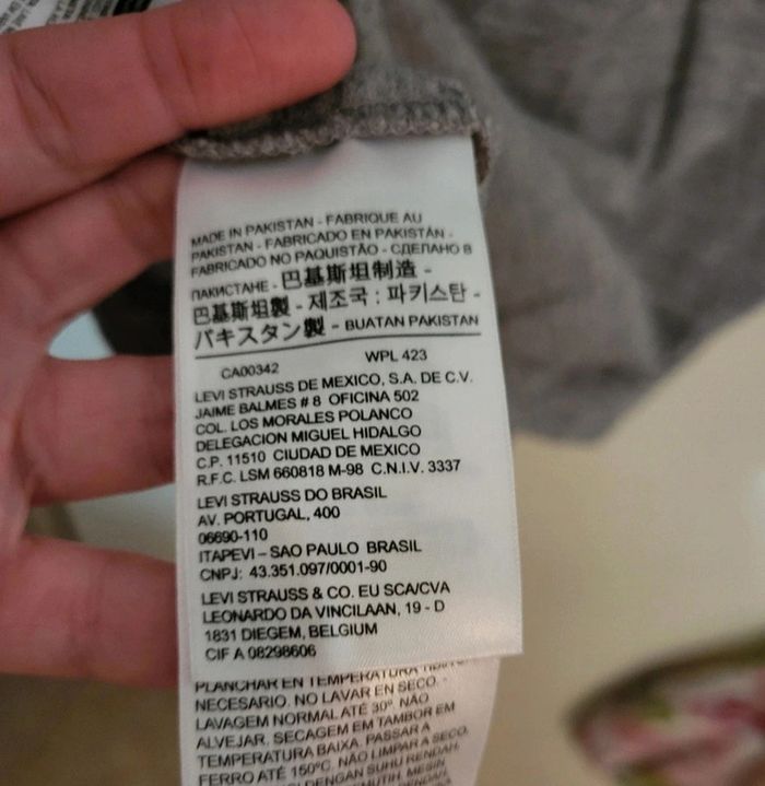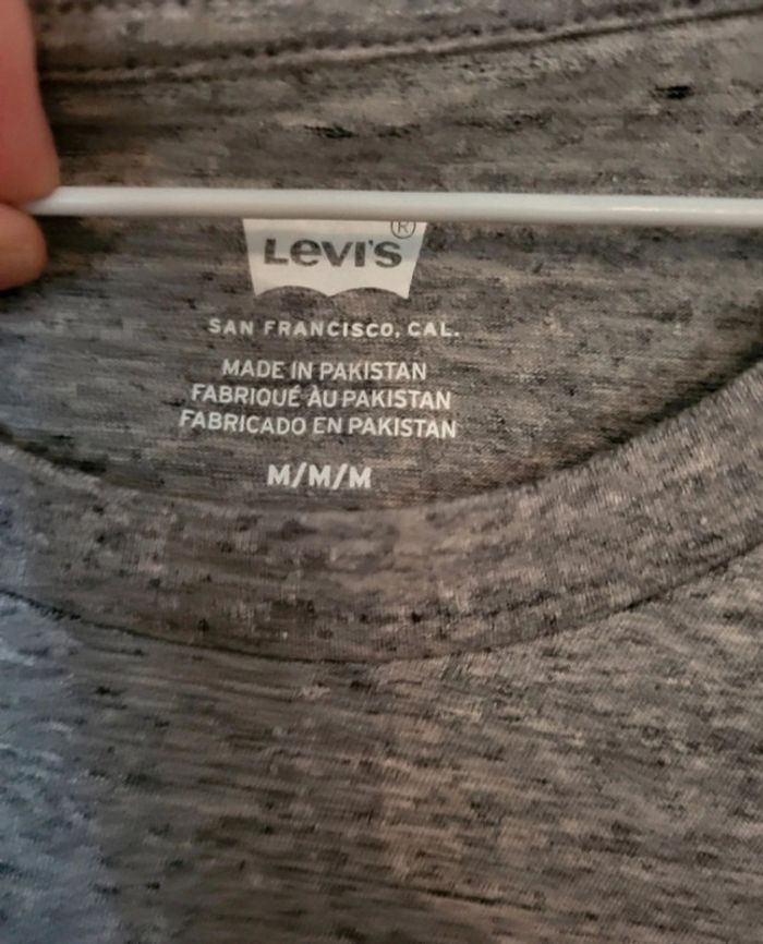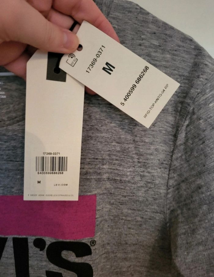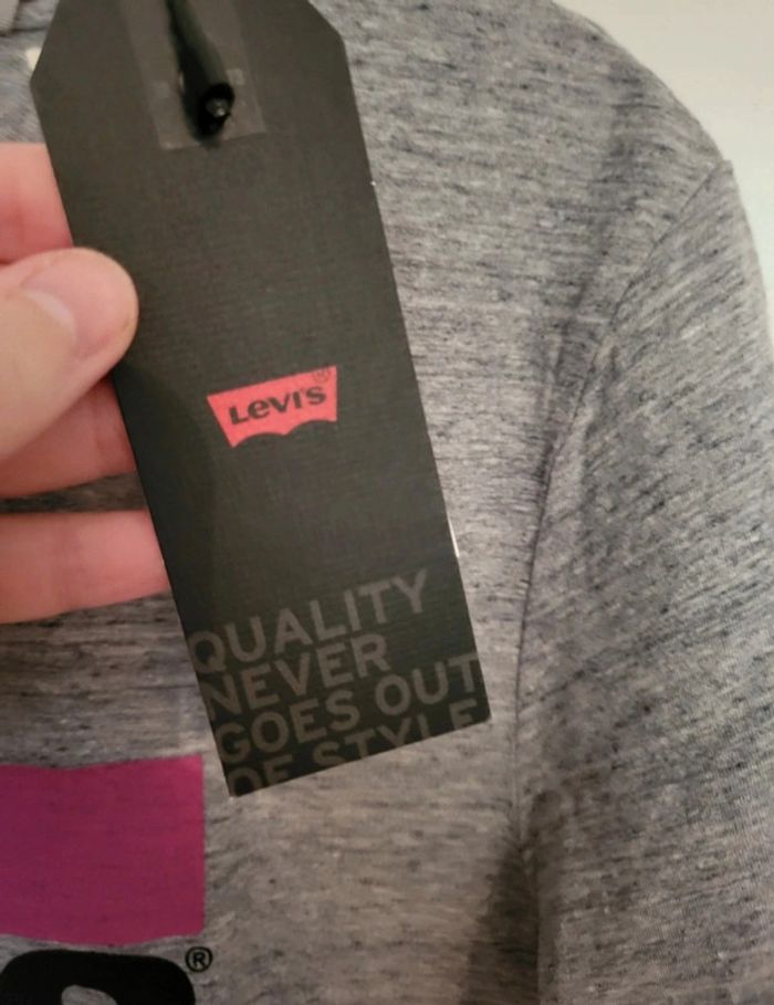T-shirt Levis gris avec bandes rose et turquoise. 100% coton. Taille M, neuf avec étiquette. Je le vends au prix de 20 euros. #TailleM38marine