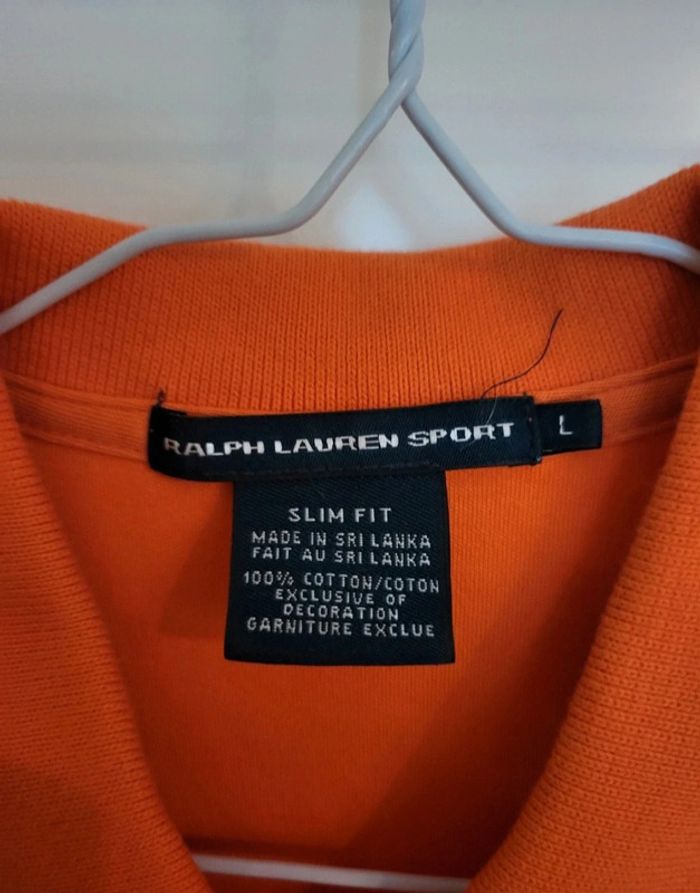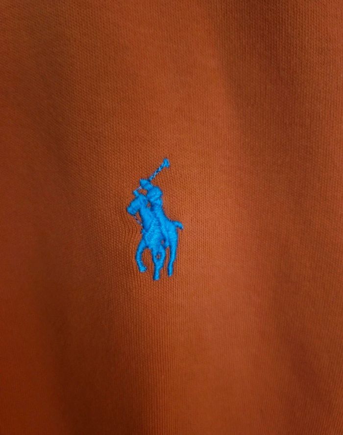 Polo matière t-shirt Ralph Lauren taille L. 100% coton. Jolie couleur orange. Logo bleu. Excellent état. Je le vends au prix de 25 euros. #TailleL40marine