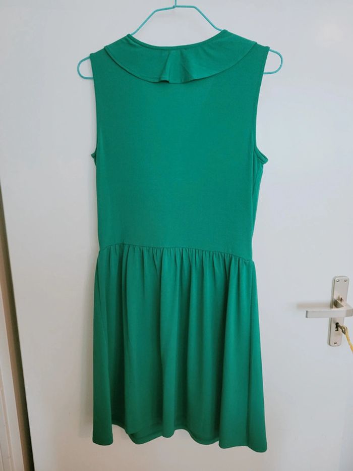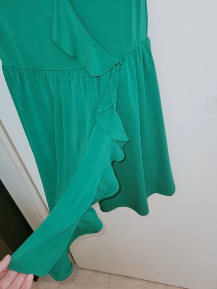 Robe vert foncé (plus foncée en vrai que sur photo) Cache Cache taille M. Décolleté en V. Volants. Je la vends au prix de 15 euros. #TailleM38marine