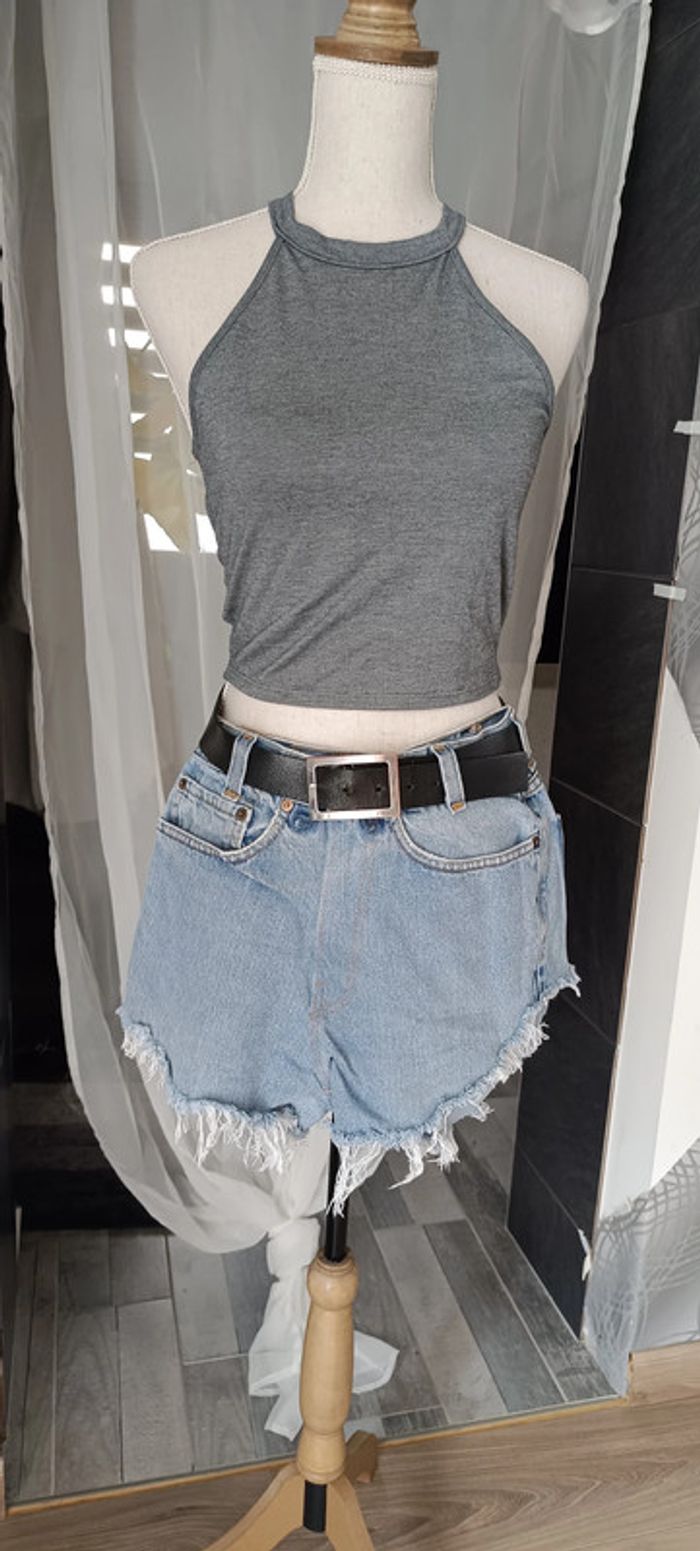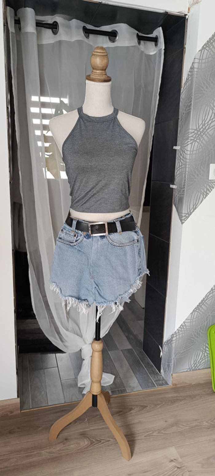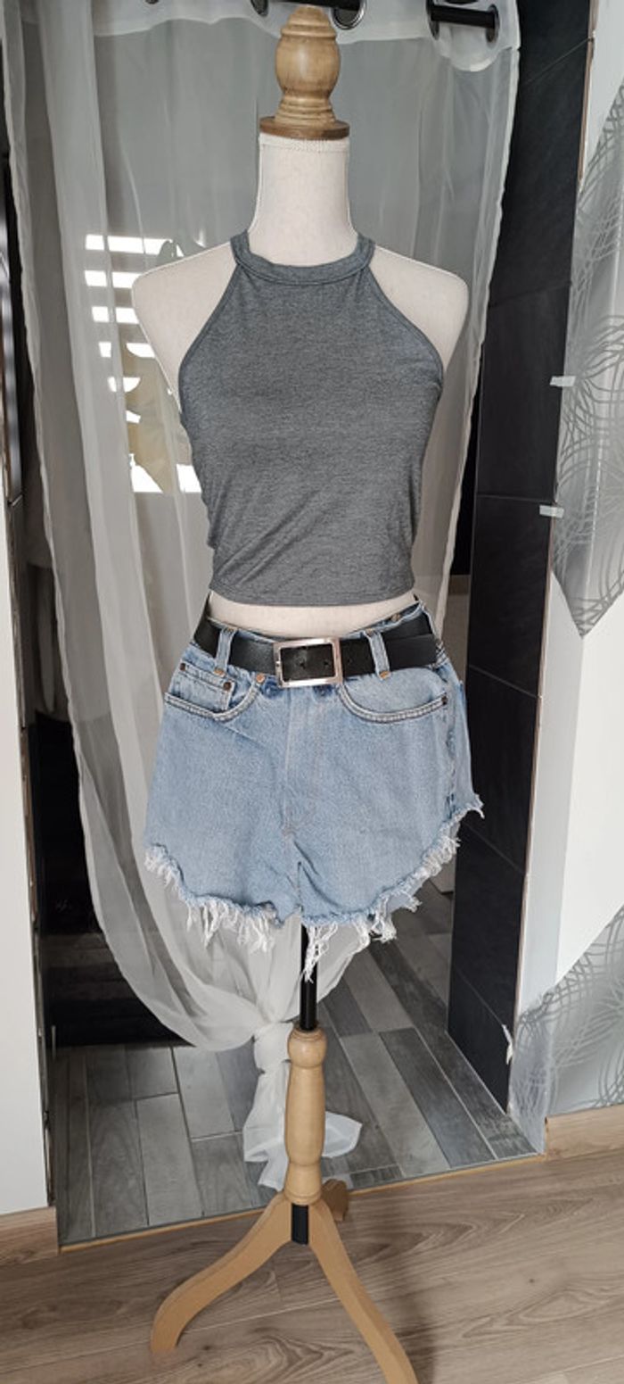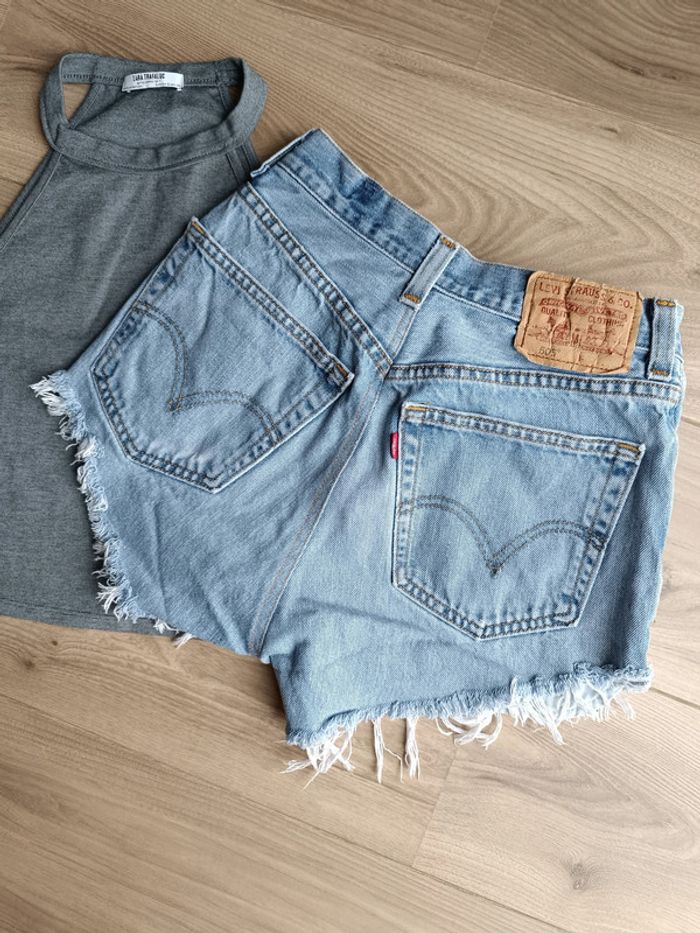 Short en Jeans Levi's taille haute taille petit 36 donc XS avec croc top zara taille S mais bien serré #julieVisXS #levis #zara