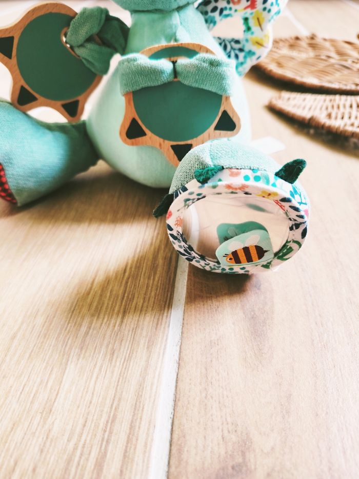 🎀Avec papier bruissant, miroir, hochet, 2 mains en bois pour le faire applaudir...