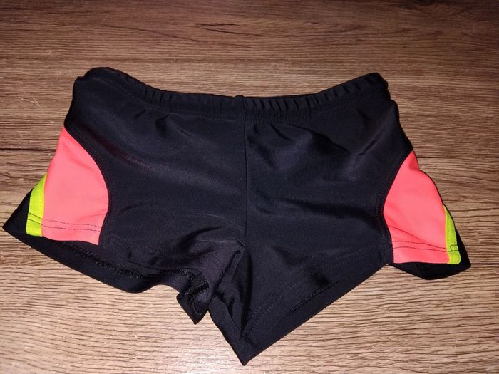 Bonjour, je vends ce maillot de bain noir jaune et orange de la marque Amazon taille 8ans en très bon état.