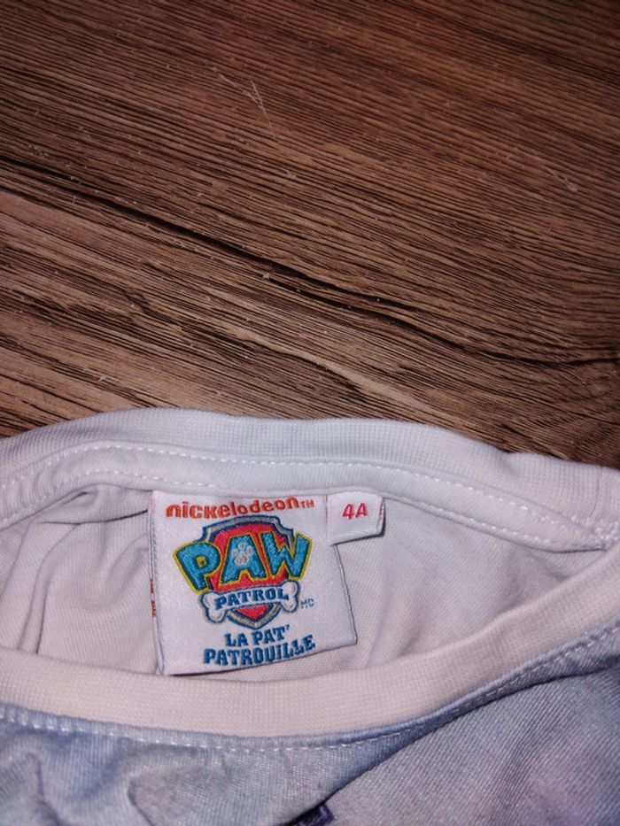 Bonjour, je vends ce tee shirt Paw Patrol taille 4ans en très bon état. Lavé maison non fumeur.