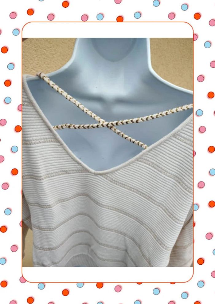 👕 Pull avec liserés brillant. Manches 3/4 ✂️ Taille 38 (étiquette absente) 🧸Bréal 🎨 crème ✅ Très bon état #rosecitron222_femme38