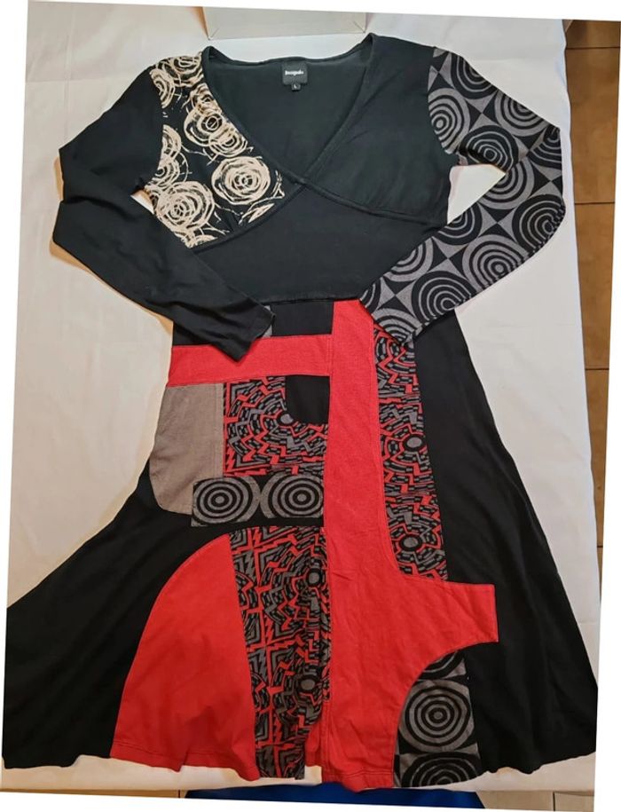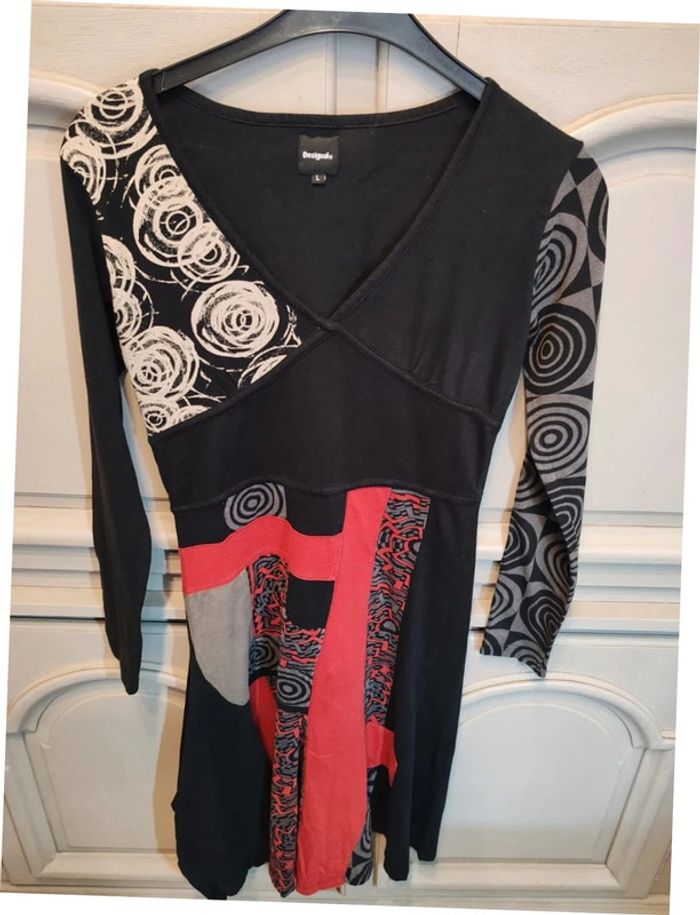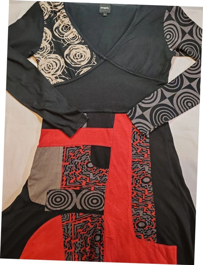 Desigual robe noir rouge longue manches taille L très bon état - photo numéro 1