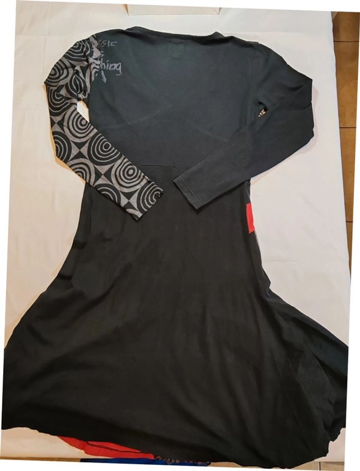 Desigual robe noir rouge longue manches taille L très bon état - photo numéro 2