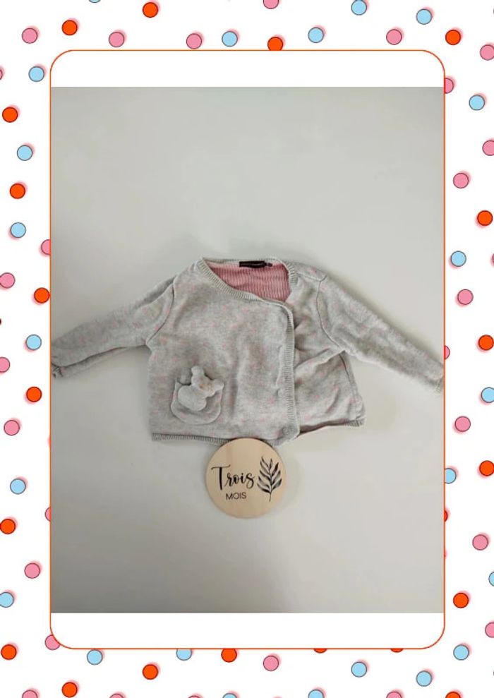 👕 Gilet bébé ✂️ Taille 3 mois 🧸 Sergent major 🎨 Gris, rose ✅ Très bon état #rosecitron222_3mois