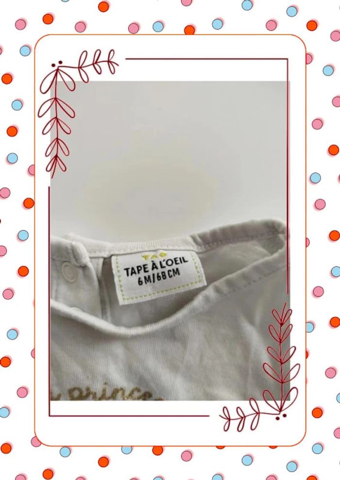 👕 T shirt manches longues ✂️ Taille 6 mois 🧸 Tape à l'oeil 🎨 Blanc et rose ✅ Très bon état #rosecitron222_6mois