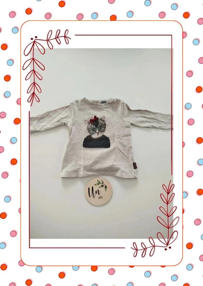 👕 T shirt manches longues ✂️ Taille 12 mois 🧸 Nano & nanette 🎨 Crème , motif chat ✅ Très bon état #rosecitron222_12mois