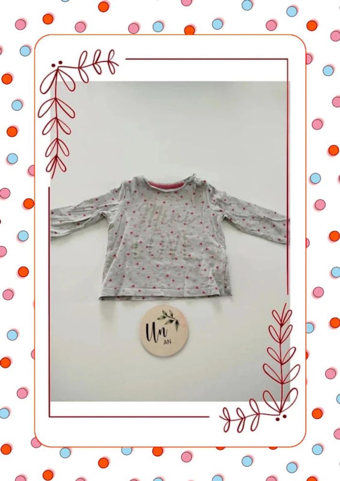 👕 t shirt manches longues ✂️ Taille 12 mois 🧸 In extenso 🎨 Gris motifs coeurs ✅ Très bon état #rosecitron222_12mois