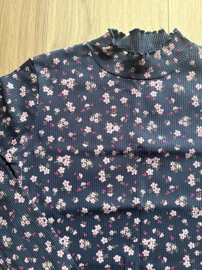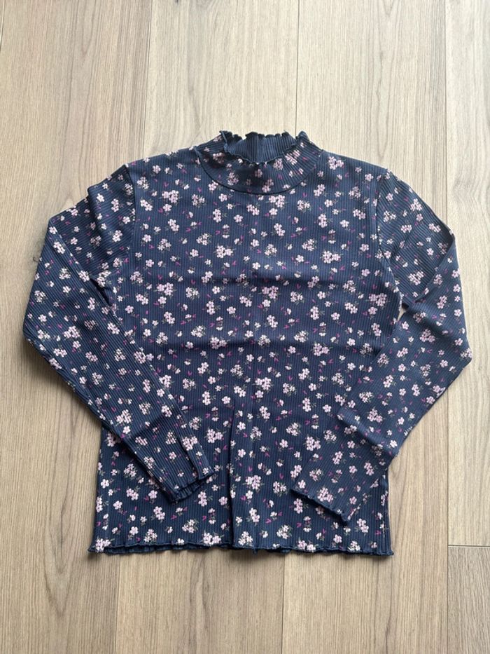 T-shirt à manches longues fille avec col à fleurs Taille : 10 ans / 140cm Très bon état