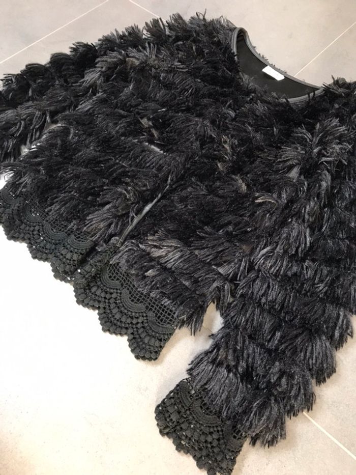 Veste en poils avec dentelle en bas de celle-ci et au niveau du bas des manches Noir Pour vêtements femme taille36 : #nini2590femme36
