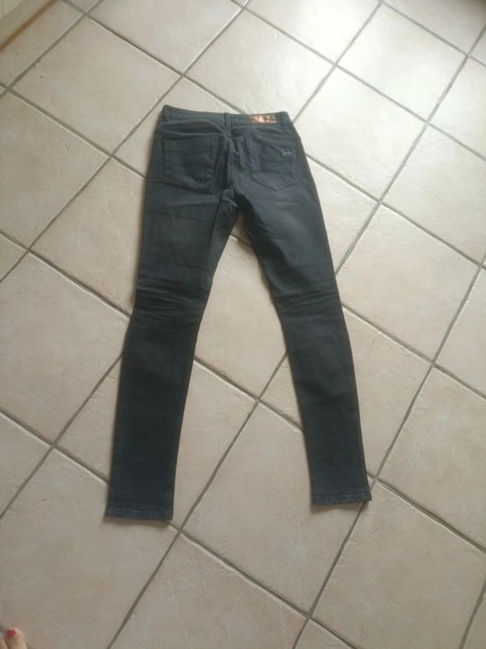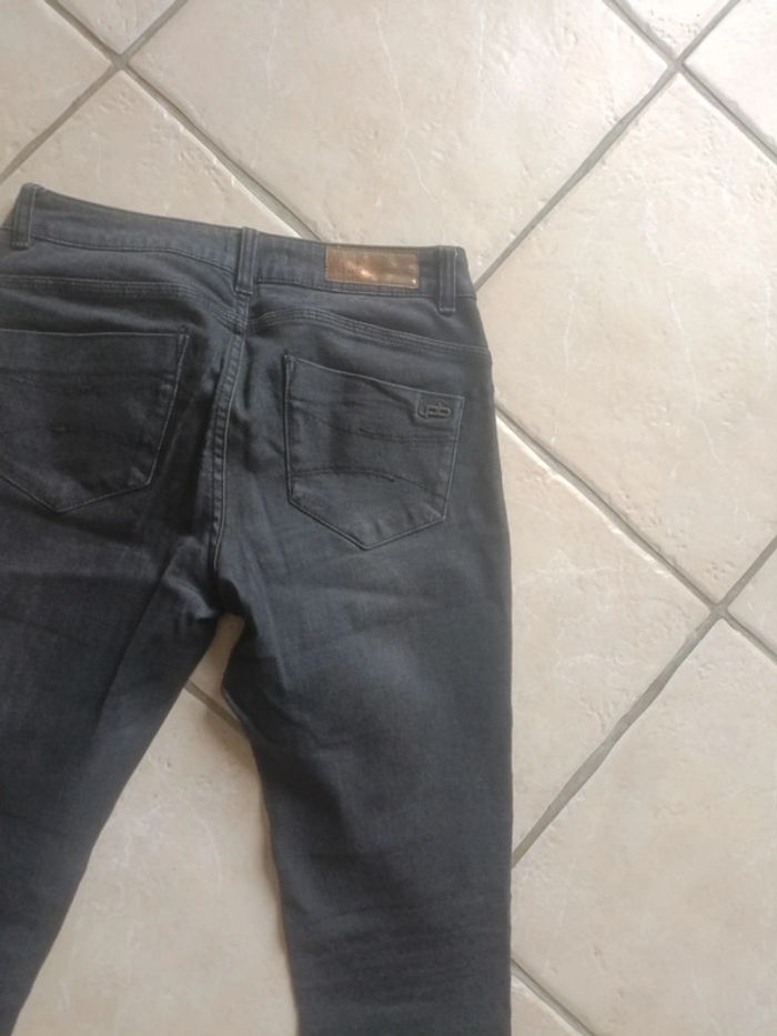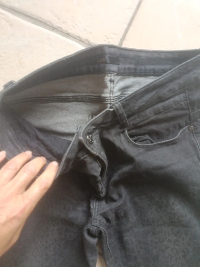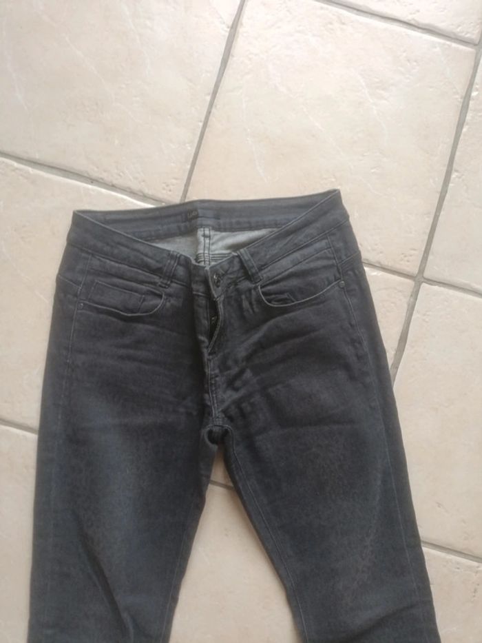 Jean noir avec motifs léopard qui apparaîssent légèrement selon exoosition a la lumière . Très joli!! Lpb woman en très bon état. Taille 38