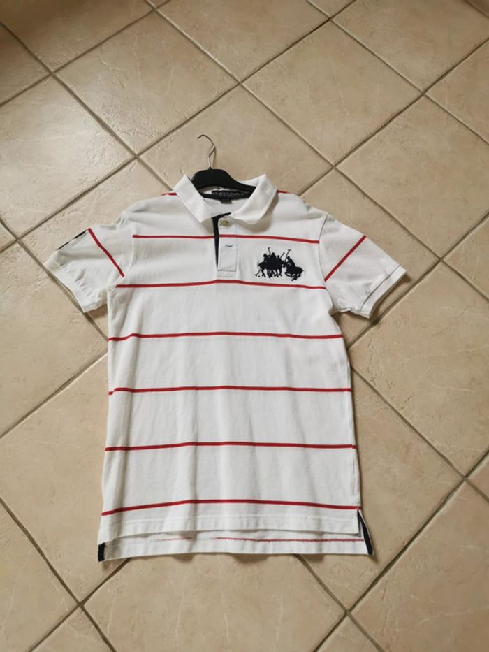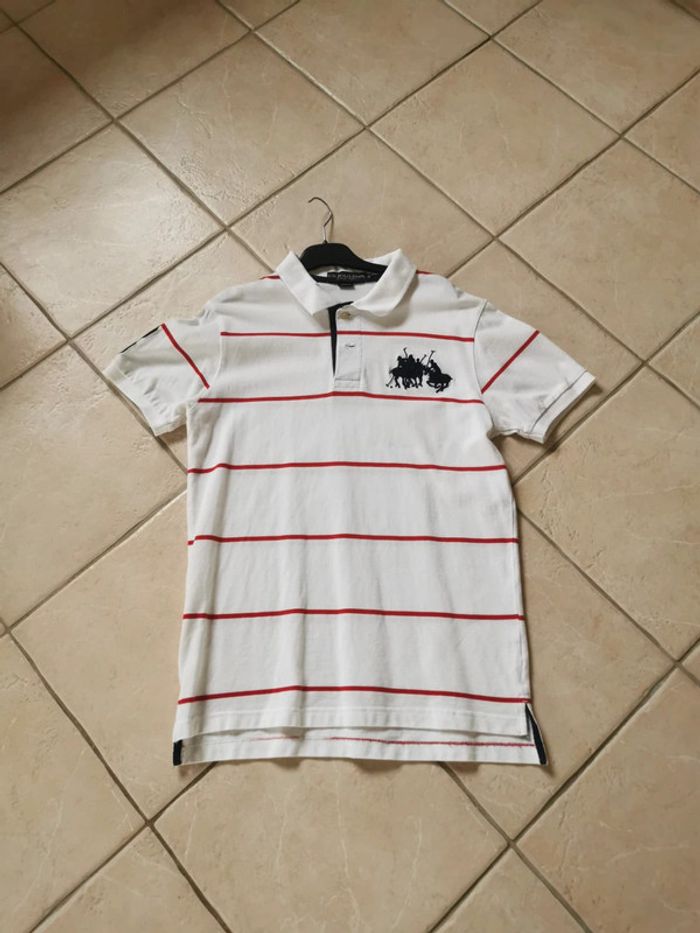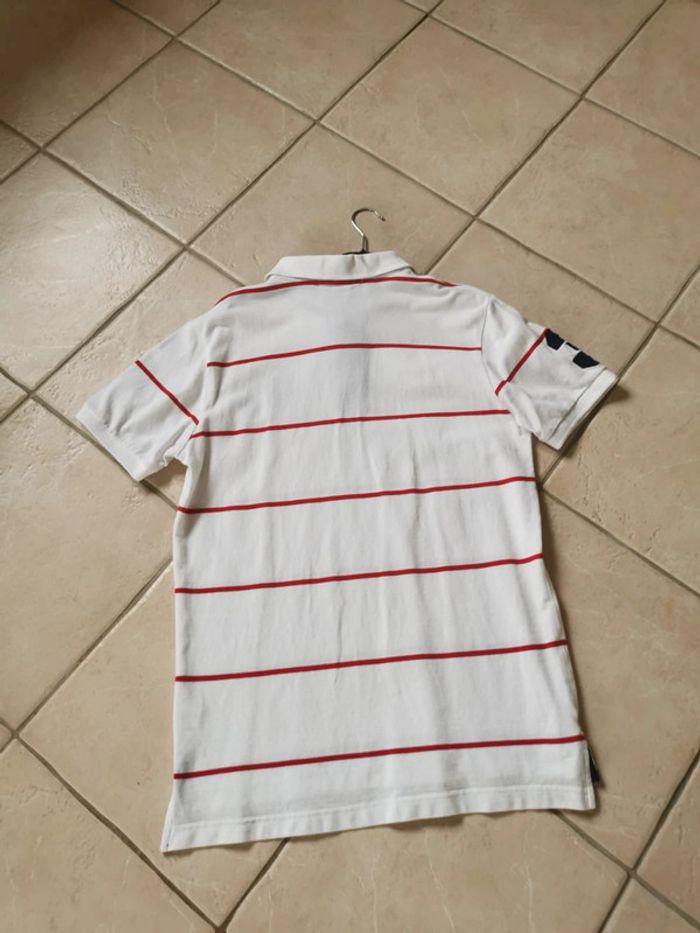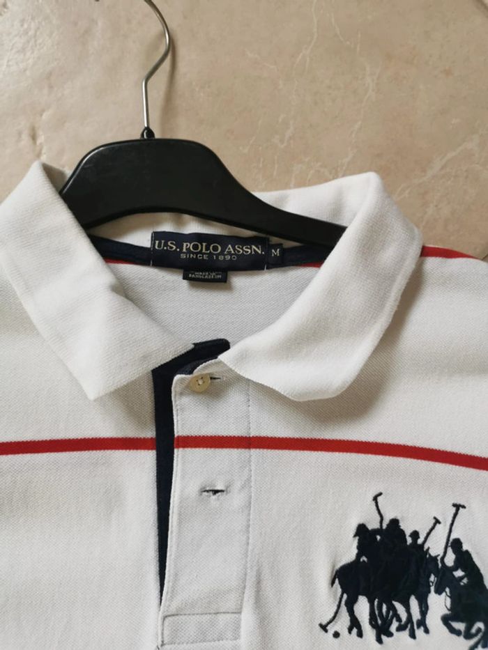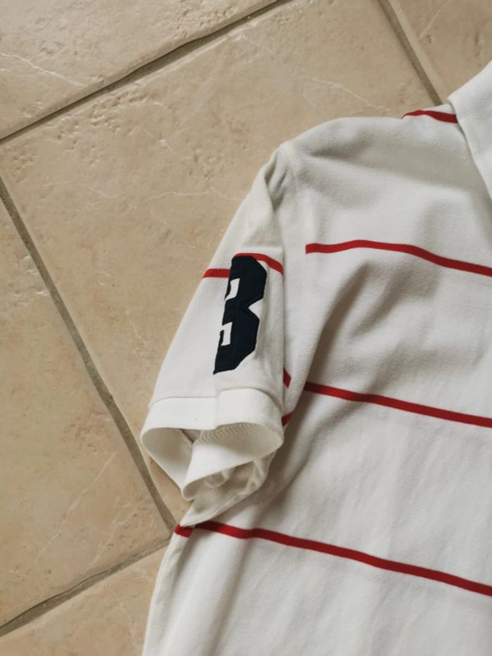 Polo homme blanc rayé rouge de marque us Polo ASSN en très bon état. Taille M