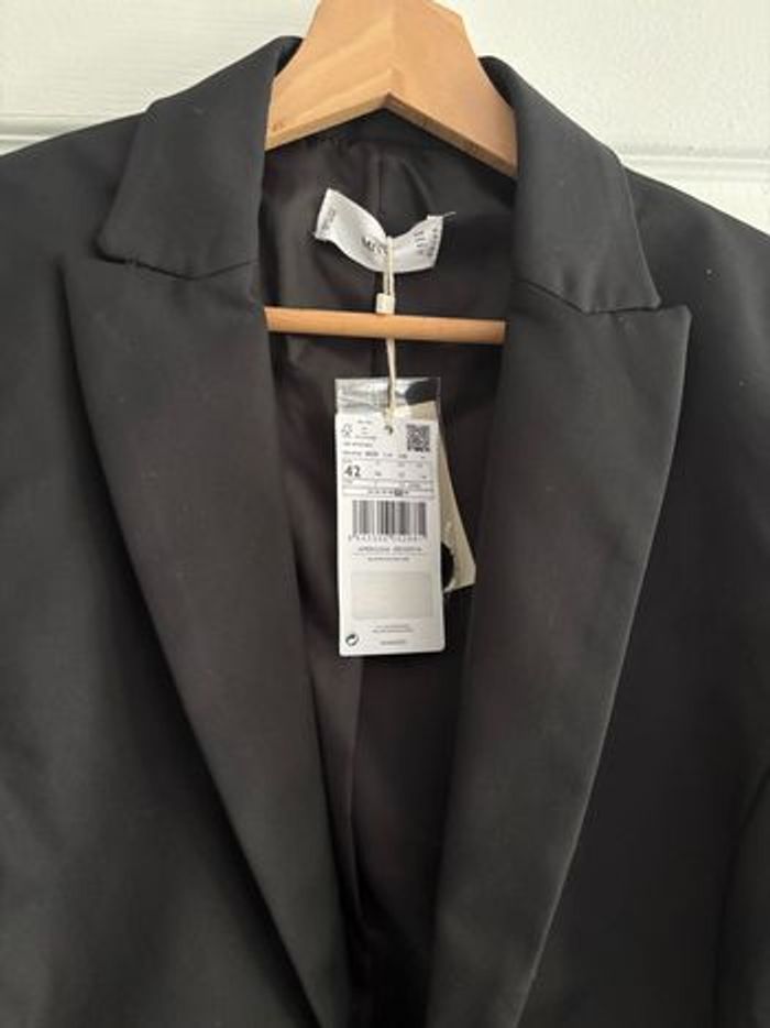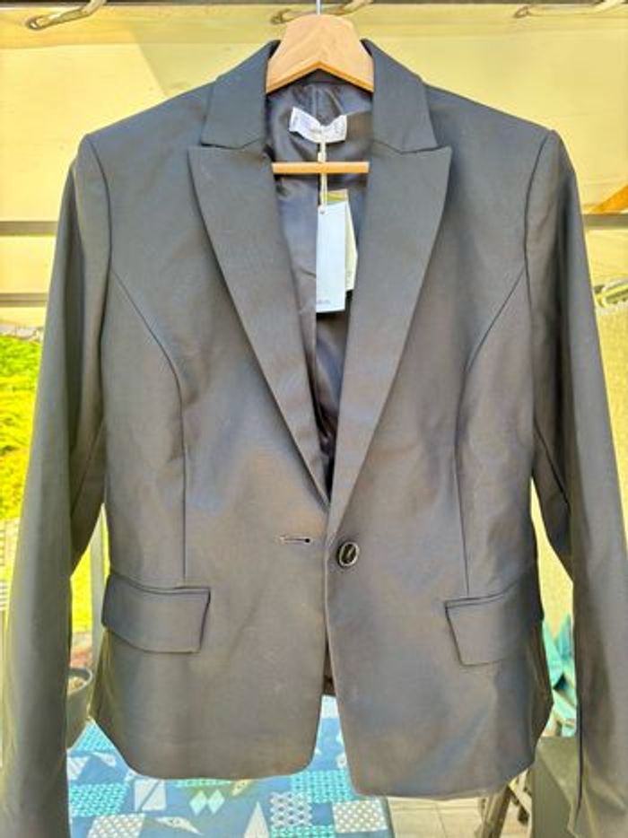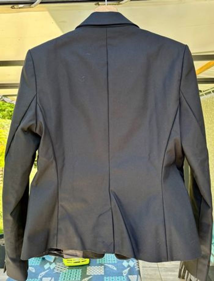 Blazer neuf jamais porté Taille 42 Noir (voir dernière photo pour la couleur exacte) Les manches sont longues la largeur entre les deux épaules est de 43 cm (externe) ; 41 cm de couture à couture. la longueur est de 63 cm 54% de coton, 43% de polyamide et 3% d'elastane