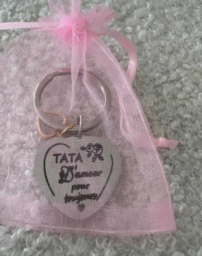Porte clés pour tata neuf dans petit pochon #sandra13190boucles_oreilles #sandra13190porteclés #sandra13190colliers #sandra13190bracelets #sandra13190bagues
