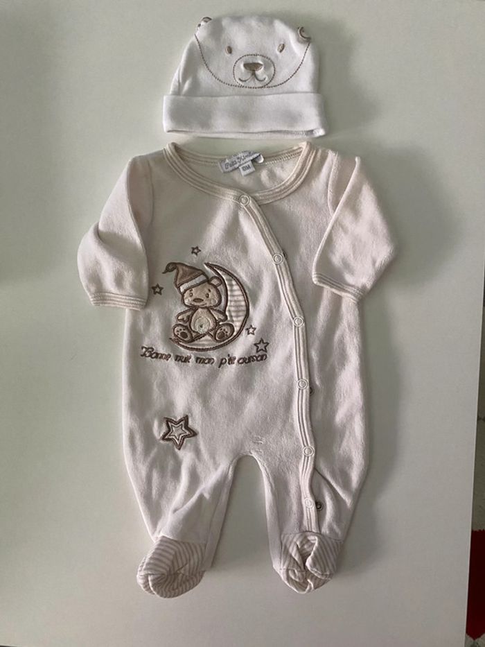 Pyjama velours avec son bonnet naissance - photo numéro 1