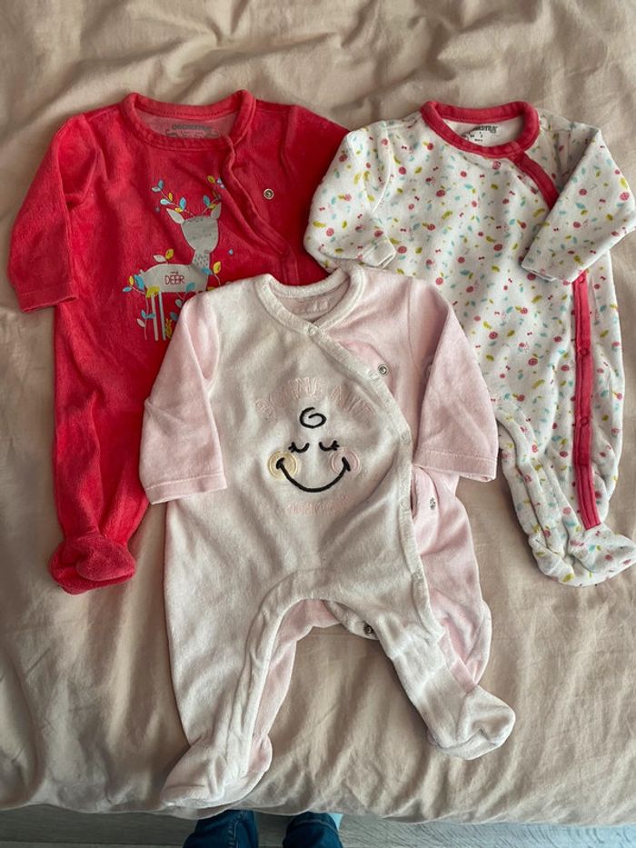 lot de 3 pyjama velour ouverture sur le devant taille 1 mois très bonne état