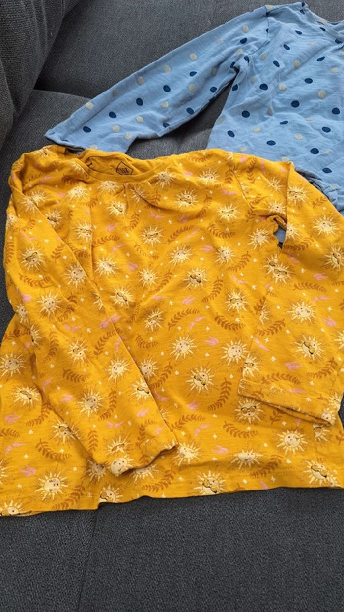 2 Tee-shirts soleil bleu pois - photo numéro 1
